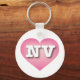 This keychain features a calm, cool, and collected pink heart with a white washed centre containing the bold, white, upper case letters NV, the official abbreviation of Nevada, the silver state.