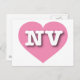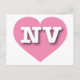 This postcard features a pink heart containing the bold, white, upper case letters NV, the official abbreviation for Nevada, the silver state. The reverse side of the postcard is blank, awaiting your customized text or handwritten sentiments.