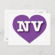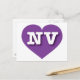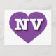 Cette carte postale est dotée d'un coeur violet plein de vitalité, contenant les lettres coques en haut et en blanc NV, l'abréviation officielle du Nevada, l'état argenté. Le verso de la carte postale est vide, en attendant votre texte customisé ou vos sentiments manuscrits.