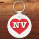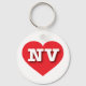This key chain features a vibrant red heart containing the bold, white, upper case letters NV, the official abbreviation for the state of Nevada, the silver state.