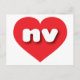 This postcard features a vibrant red heart containing the bold, white, rounded lower case letters nv, a playful abbreviation for the state of Nevada, the silver state. The reverse side of the card is blank, awaiting your customized text or handwritten sentiments.