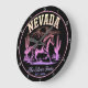 Display your Nevada state pride, with this charming wall clock. It features the Silver State heritage, showcasing a vibrant horse cactus desert, design. An established 1864 gift, celebrating Western history. This Nevada wall clock, adds timeless Southwestern charm to any home. Perfect for any one.