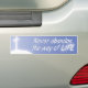 The Way of Life is the way of righteousness.... the way that God wants us to walk as outlined in His Word, the Bible, His holy scriptures. This Christian bumper sticker in blue and white has a cross and the words "Never abandon the way of life."