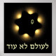 For Yom HaShoah, Holocaust Remembrance Day. A black and yellow fractal image recalling the yellow "Star of David" which the Nazis required Jews to wear during the Holocaust. Hebrew text reading, "Le Olam Lo Od" (Never Again) also appears. Never forget; never let it happen again.