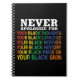 This spiral notebook features the text " Never Apologize for Your Black Thoughts, Your Black Loyalties, Your Black Motives, Your Black History, Your Black Pride or Our Black Skin". It is perfect for African-Americans for freedom celebrations, emancipation celebrations, Juneteenth, July 19th or any other occasion.