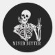 Never Better Skeleton Funny Halloween Skull Classic Round Sticker