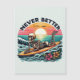 A bold and playful greeting card featuring a skeleton riding a surfboard on a crashing ocean wave, set against a vibrant sunset background with the phrase “Never Better.” This ironic and carefree artwork blends surf culture with dark humour—perfect for beach lovers, alternative style fans, and those who embrace life with a rebellious, lighthearted edge.