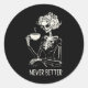 Never Better Skeleton Women Drinking Coffee Flower Classic Round Sticker