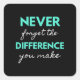 Never Forget The Difference You Make design. This is a short motivational quote which is great as an employee appreciation gift. Also suitable as a coworker office gift.