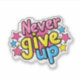 Bold and uplifting, our Never Give Up sticker features strong lettering and a clean design that stands out wherever you place it. Its minimal yet powerful style makes it perfect for daily motivation. A simple design with a big dose of determination!