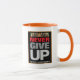 Motivational Quote Never Give Up Never Surrender 11 oz Size White and Orange Combo Mug Template. Buy Kitchen & Dining / Drinkware / Mugs & Cups Online Shop.