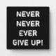 Never, Never, Ever Give Up Plaque for your wall or desk. Stay motivated to never give up by keeping this plaque where you can see it everyday! For yourself or a friend. Mix and match with other plaques in my store too!