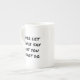 This mug is imprinted with a Bach Solos Suite for Cello. It was purchased as a thank you gift for a professional cellist friend who often performs this work. The cup is made of a high-grade ceramic and is fairly light. The walls are not too thick and it is a small to medium size. It's well finished, has a high-gloss glaze, and looks very elegant. The Bach Solo Suite score on the example I received was clear and had high contrast. Even though the staffs were small, the music was easy to read. The cellist who received this cup immediately knew what the music was as soon as she set eyes on it.