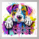 "Never Lose Your Curiosity, There’s So Much to See" with a colourful cute pitbull puppy dog peering over the fence, playing peek-a-boo with the world.