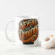 A visually striking, motivational graphic featuring the phrase "Never Stop Dreaming" in bright orange typography. This is an artistic and motivational design perfect for t-shirts, mugs, napkins, posters, and merchandise, combining bold fonts and decorative elements to inspire positivity