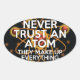 NEVER TRUST AN ATOM Fun Science Oval Sticker