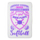 Girls Softball design in pink and purple which says: Never Underestimate A Girl Who Plays Softball