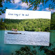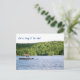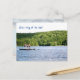 Lake address moving postcards with custom text. Photography of kids playing on a floating lake raft and green hills along the shore, is on the front along with text of your choice. Also, customize text on the back with new address information. Perfect for the luck ones who live lakeside.
