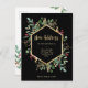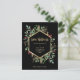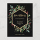 This stunning holiday moving announcement features a faux gold geometric frame with matching gold leaves, elegant Christmas greenery, and red holly berries on a modern black background. Trendy, faux gold whimsical typography says "New Address." The perfect way to wish your friends a Merry Christmas from your new home!