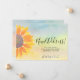 It is decorated with a yellow sunflower on a watercolor background.