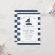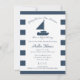 Set sail on a new adventure to welcome baby with our navy blue sail boat and nautical stripes elegant and classic baby shower invitation for mommy and daddy to be. Personalize as preferred.