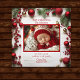 Give a loved one the gift of forever with this beautiful ceramic tile with a red, and green white barnboard background and a new baby announcement photo and text