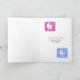 A pretty pink, blue and white Congratulations card for the birth of more than one new baby, with an old-fashioned pram design, from a paper collage by Judy Adamson. Please feel free to change the inside message if you with and contact me through my store to change the front cover text.