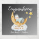Celebrate the arrival of a new baby with this extra special congratulations bottle label. The Design features a cartoon baby penguin asleep on a crescent moon  on a cloud with a black and grey gradient background and gold coloured stars. A Fabulous label that makes a bottle of sparkling wine or wine turn into an an extra special congrats gift for any new parent . All text can be customized and personalized to suit your own needs.