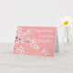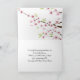Congratulations on your new baby girl! Customize the text on this pretty and girly soft pink cherry blossom design features a branch from the pink flowering cherry or dogwood tree sakura. Baby pink background with light swirls, with a foreground of dark brown tree branches with petals and green leaves. A lovely design for congratulating the new mom and new dad at the baby shower or after baby's birth.