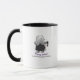 White mug with black rim featuring our New Beginnings, Happy Endings logos!