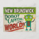 A funny New Brunswick New Jersey vintage travel design featuring a friendly robot with fun retro style text that says, "New Brunswick, Robot Capital of the world!"
