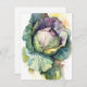 A vibrant watercolor depiction showcases a cabbage with lush green leaves and hints of purple. Soft transitions between colours create a delicate and natural appearance.