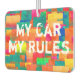 Car owner gift. A bright Pattern of many colours with Message "My Car My Rules"