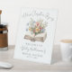 A charming welcome sign for a baby or bridal shower inspired by the “A New Chapter Begins” theme. Centred on the sign is a watercolor open vintage book with delicate wildflowers blooming from inside in soft blush pink, yellow, periwinkle blue, and subtle hints of orange-red, creating a warm and whimsical look.