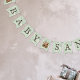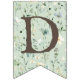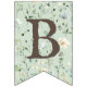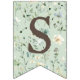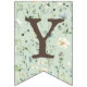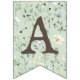 This sweet floral party bunting flags features an illustration in the background of spring wildflowers in soft colours. Centred is old books in a stack with sweet flowers. Part of a collection with the theme "A new chapter is about to be told". It the example the baby's last name is of seven letters. If you want to design it with shorter or longer names each flag has three layers inside the design tool. The background, the letter and the stack of books. Changing the order of the layars you can easily make each flag with or without letter or books.