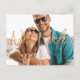 Trendy modern style wedding New Date big copper gold glitter typography hand lettered script overlay and your custom photo making a simple elegant postponement announcement postcard. +++++++++++++ Easy to personalize with your favourite full bleed photo and your details on both sides!