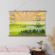 Wood topped Wall Tapestry, a rustic touch with vivid sunrise colours on mountain silhouette with an inspirational quote. The illustration features bright orange, burnt sienna sun rays with birds returning/migrating on a green scenery backdrop. Just right for 'home decor' / 'wall art' / 'home accent' to brighten your walls. Gift it on an occasion like house warming/renovation and more. The TEXT is customizable with your choice of font & script.