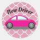 New Driver Pink Car on Pink Quatrefoil Sticker