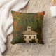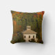 This artistic throw pillow features a lovely fall scene. A little white New England house with a cupola is nestled at the foot of a hill which displays glorious autumn foliage with trees and leaves in colours of red, orange, yellow, gold and green.