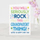Congratulate the new grandparents-to-be with this fun, colourful typography design card featuring the message, "You will seriously ROCK this daddy thing! We're so happy for you!" Type is accented with watercolor baby item illustrations, music notes, stars and smiles. Inside has this message, but can be customized with your own personal message.