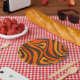 New Groove Retro Swirl Abstract Pattern 70s Orange Paper Plate