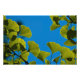 Backlit Ginkgo leaves against a blue sky.