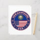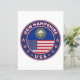 Badge of New Hampshire with flag of New Hampshire and flag of USA colours, rounded shape.