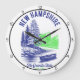 Display your New Hampshire state pride, with this charming wall clock. It features the Granite State heritage, showcasing a scenic lake boat forest, design. An established 1788 gift, celebrating natural beauty. This New Hampshire wall clock, adds timeless New England charm to any home. Perfect for any one.
