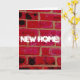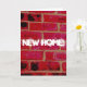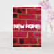 "New home" greeting card with inside message "Good luck in your new place" and an image of a brick wall.