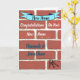 A New Home card, which features a brick wall background and the wording 'New Home' in a blue ribbon banner as well as the wording 'Congratulations on your new home'. This card can be personalized on the front by amending the names of the purchases. The message on the right inside the card which reads 'Congratulations on the purchase of your new home' can be altered to suit your needs. The image on the inside of the card can be amended.