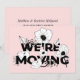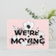 Black and White Anemones wrapped around We're Moving Text on a blush pink background. The new address is on the reverse and iot's a template ready for you to add your own details.