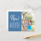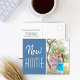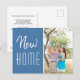 Beautiful family moving announcement with your own personalized photograph. Cute coastal blue with chic white typography for a pretty change of address postcard for your new home.
