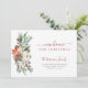 Christmas seasonal red terracotta and white floral bouquet with holly berries and seasonal pine green foliage family moving new address announcement card with a trendy red handwriting script. ++++++++ Easy to personalize with your family name and new address!