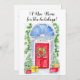 This watercolor new home for the holidays announcement card with a red front door with pine boughs and trees, presents and a wreath, and your family name above the door would be perfect to send to your friends and family when you have moved to a new home before the holidays. The sentiment on the back is customizable so you can send a holiday greeting unique to you. Get enough so that everyone you know and love has your new address and phone number. They'll be so excited about your big move!